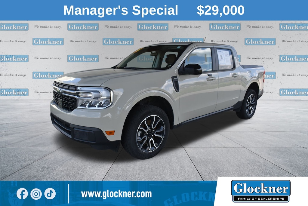 Glockner of Ironton is proud to offer this superb 2024 Ford Maverick in Terrain. This 2024 Ford Maverick has passed our comprehensive inspection and comes with the following features; Equipment Group 500A Standard, Glockner Certified Certified, 2.5L I-4 Hybrid, 2.91 Axle Ratio, 4-Wheel Disc Brakes, 8 Speakers, ABS brakes, ActiveX Trimmed Front Bucket Seats, Air Conditioning, Alloy wheels, AM/FM radio: SiriusXM, Auto High-beam Headlights, Automatic temperature control, Brake assist, Bumpers: body-color, Compass, Delay-off headlights, Driver door bin, Driver vanity mirror, Dual front impact airbags, Dual front side impact airbags, Electronic Stability Control, Emergency communication system: 911 Assist, Exterior Parking Camera Rear, Front anti-roll bar, Front Bucket Seats, Front Center Armrest, Front dual zone A/C, Front reading lights, Front wheel independent suspension, Fully automatic headlights, Heated door mirrors, Heated front seats, Heated steering wheel, Illuminated entry, Knee airbag, Low tire pressure warning, Navigation System, Occupant sensing airbag, Outside temperature display, Overhead airbag, Overhead console, Panic alarm, Passenger door bin, Passenger vanity mirror, Power door mirrors, Power driver seat, Power Moonroof, Power steering, Power windows, Radio data system, Radio: B&O Sound System by Bang & Olufsen, Rear anti-roll bar, Rear Parking Sensors, Rear seat center armrest, Rear step bumper, Remote keyless entry, Security system, SiriusXM Radio, Speed control, Speed-sensing steering, Steering wheel mounted audio controls, SYNC 3 Communications & Entertainment System, Telescoping steering wheel, Tilt steering wheel, Traction control, Trip computer, Wheels: 18" Machined-Face Black Painted Aluminum, and Wheels: 18" Machined-Face Bright Aluminum.