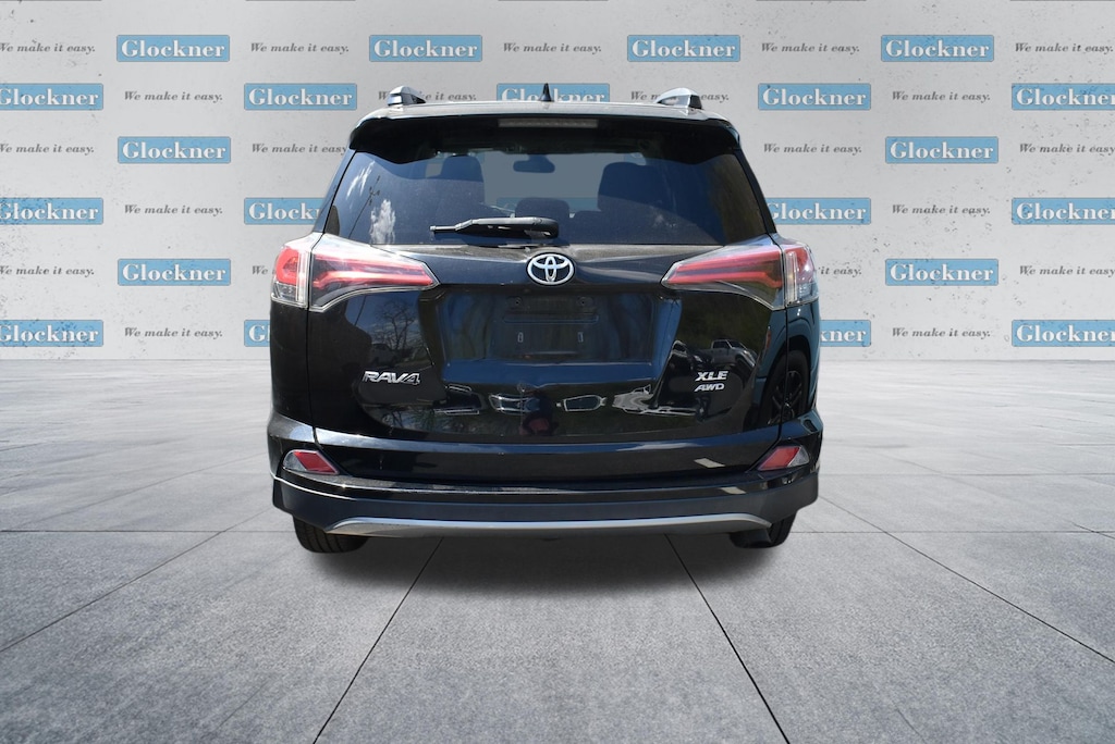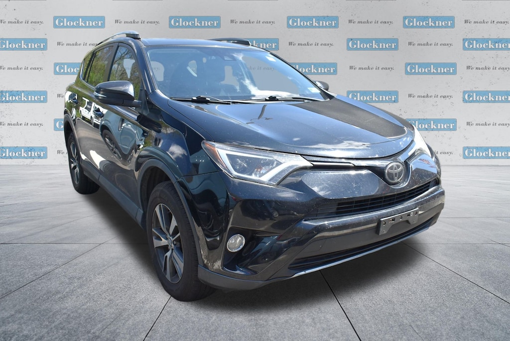 Glockner Ford Southpoint is proud to offer this great 2018 Toyota RAV4 in Black. This 2018 Toyota RAV4 has passed our comprehensive inspection and comes with the following features; Carpet Mat Package (Carpet Cargo Mat and Carpet Floor Mats), Plus Extra Value Package (Blind Spot Monitor, Radio: Entune Display Audio, Rear Backup Camera w/Monitor, Roof Rails, and Smart Key System), Ford Blue Advantage: Blue Certified Certified, AWD, Black Cloth, 4-Wheel Disc Brakes, 4.071 Axle Ratio, 6 Speakers, ABS brakes, Air Conditioning, Alloy wheels, AM/FM radio, Auto High-beam Headlights, Automatic temperature control, Brake assist, Bumpers: body-color, Driver door bin, Driver vanity mirror, Dual front impact airbags, Dual front side impact airbags, Electronic Stability Control, Exterior Parking Camera Rear, Fabric Seat Trim, Four wheel independent suspension, Front & Back Clearance Sonar, Front anti-roll bar, Front Bucket Seats, Front Center Armrest, Front dual zone A/C, Front fog lights, Front reading lights, Front Sport Seats, Fully automatic headlights, Heated door mirrors, Illuminated entry, Knee airbag, Leather steering wheel, Occupant sensing airbag, Outside temperature display, Overhead airbag, Overhead console, Panic alarm, Passenger door bin, Passenger vanity mirror, Power door mirrors, Power moonroof, Power steering, Power windows, Radio data system, Radio: Entune AM/FM/CD/MP3/WMA Playback w/6 Speakers, Radio: Entune Premium Audio with Navigation, Rear anti-roll bar, Rear seat center armrest, Rear window defroster, Rear window wiper, Remote keyless entry, Speed control, Speed-sensing steering, Split folding rear seat, Spoiler, Steering wheel mounted audio controls, Tachometer, Telescoping steering wheel, Tilt steering wheel, Traction control, Trip computer, Turn signal indicator mirrors, Variably intermittent wipers, Wheels: 17" 5-Spoke Superchrome Alloy, and CD player.