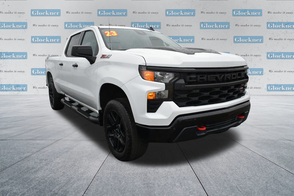 Glockner of Ironton is proud to offer this trusty 2023 Chevrolet Silverado 1500 in Summit White. This 2023 Chevrolet Silverado 1500 has passed our comprehensive inspection and comes with the following features; Custom Convenience Package (Electric Rear-Window Defogger, EZ Lift Power Lock & Release Tailgate, LED Cargo Area Lighting, Remote Vehicle Starter System, and Theft Deterrent System (Unauthorized Entry)), Suspension Package (Heavy-Duty Air Filter and Hill Descent Control), Trailering Package (Hitch Guidance), Glockner Certified Certified, 8-Speed Automatic, 4WD, Jet Black Cloth, 10-Way Power Driver Seat w/Lumbar, 120-Volt Bed Mounted Power Outlet, 120-Volt Instrument Panel Power Outlet, 220 Amp Alternator, 3.42 Rear Axle Ratio, 3.5 Monochromatic Display Driver Info Center, 4-Wheel Disc Brakes, 40/20/40 Front Split-Bench Seat, 6 Speakers, 6-Speaker Audio System, ABS brakes, Air Conditioning, Alloy wheels, AM/FM radio: SiriusXM, Apple CarPlay/Android Auto, Auto High-beam Headlights, Auto-Locking Rear Differential, Automatic Emergency Braking, Bluetooth® For Phone, Brake assist, Chevrolet Connected Access Capable, Cloth Seat Trim, Color-Keyed Carpeting Floor Covering, Compass, Deep-Tinted Glass, Delay-off headlights, Driver door bin, Driver vanity mirror, Dual front impact airbags, Dual front side impact airbags, Dual Rear USB Ports (Charge Only), Electrical Steering Column Lock, Electronic Cruise Control, Electronic Stability Control, Following Distance Indicator, Forward Collision Alert, Front anti-roll bar, Front Center Armrest w/Storage, Front Pedestrian Braking, Front reading lights, Front Rubberized Vinyl Floor Mats, Front wheel independent suspension, Fully automatic headlights, HD Rear Vision Camera, Heated door mirrors, Illuminated entry, IntelliBeam Automatic High Beam On/Off, Lane Keep Assist w/Lane Departure Warning, Low tire pressure warning, Manual Tilt Wheel Steering Column, Occupant sensing airbag, OnStar & Chevrolet Connected Services Capable, Outside temperature display, Overhead airbag, Overhead console, Panic alarm, Passenger door bin, Passenger vanity mirror, Performance Red Recovery Hooks, Power door mirrors, Power driver seat, Power Front Windows w/Driver Express Up/Down, Power Front Windows w/Passenger Express Down, Power Rear Windows w/Express Down, Power steering, Power windows, Premium audio system: Chevrolet Infotainment 3, Radio data system, Radio: Chevrolet Infotainment 3 System, Rear 60/40 Folding Bench Seat (Folds Up), Rear reading lights, Rear Rubberized-Vinyl Floor Mats, Rear step bumper, Rear window defroster, Remote Keyless Entry, Remote keyless entry, Security system, SiriusXM Radio, Speed control, Speed-sensing steering, Split folding rear seat, Standard Tailgate, Tachometer, Tilt steering wheel, Traction control, Trip computer, Variably intermittent wipers, Voltmeter, Wheels: 18 x 8.5 Black Painted Aluminum, Wi-Fi Hot Spot Capable, and Wireless Phone Projection.