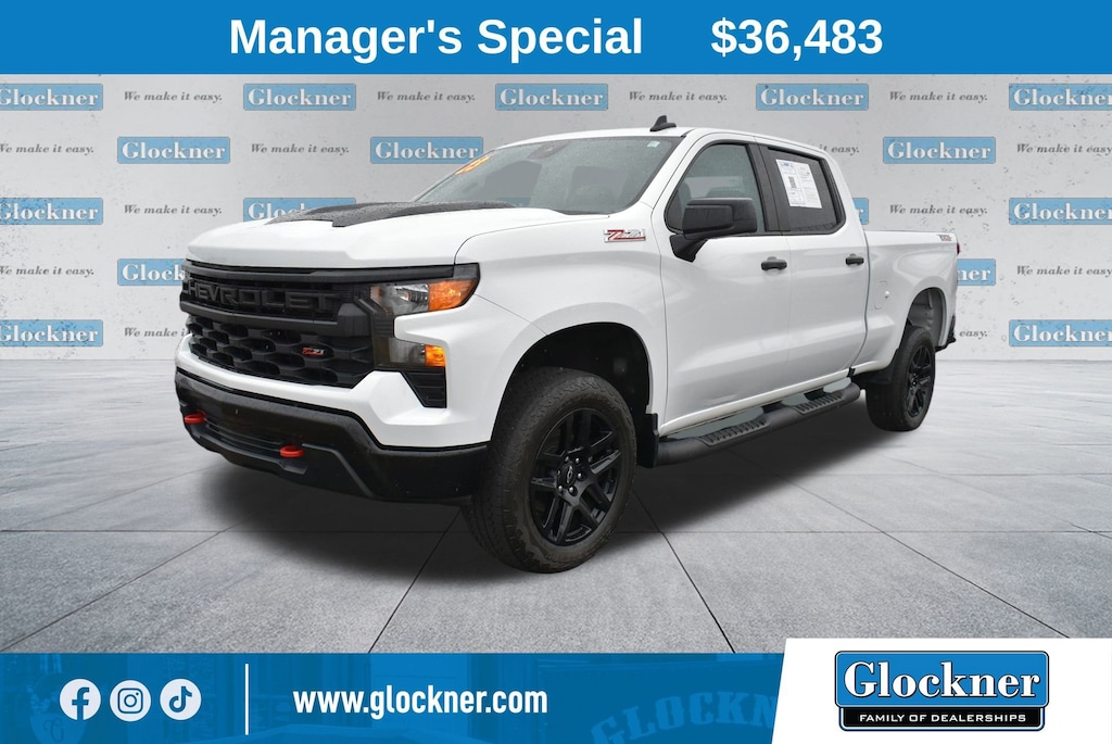 * MSRP is the Manufacturer's Suggested Retail Price (MSRP) of the vehicle. Advertised vehicle price does not include tax, tags, documentation fee, and $699 Glockner Guarantee. Pricing and availability may vary based on a variety of factors, including options, dealer, specials, fees, and financing qualifications. Consult your dealer for actual price and complete details. Vehicles shown may have optional equipment at additional cost.