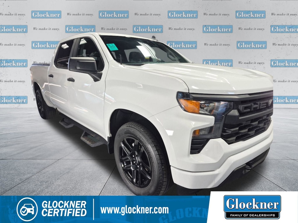 Glockner of Ironton is proud to offer this reliable 2023 Chevrolet Silverado 1500 in Summit White. This 2023 Chevrolet Silverado 1500 has passed our comprehensive inspection and comes with the following features; Custom Convenience Package (Electric Rear-Window Defogger, EZ Lift Power Lock & Release Tailgate, LED Cargo Area Lighting, Remote Vehicle Starter System, and Theft Deterrent System (Unauthorized Entry)), Custom Value Package, High Capacity Suspension Package, Preferred Equipment Group 1CX (10-Way Power Driver Seat w/Lumbar, 120-Volt Bed Mounted Power Outlet, 120-Volt Instrument Panel Power Outlet, 3.5 Monochromatic Display Driver Info Center, Bluetooth® For Phone, Chevrolet Connected Access Capable, Color-Keyed Carpeting Floor Covering, Compass, Deep-Tinted Glass, Dual Rear USB Ports (Charge Only), Electrical Steering Column Lock, Electronic Cruise Control, Front Frame-Mounted Black Recovery Hooks, Front Rubberized Vinyl Floor Mats, HD Rear Vision Camera, Manual Tilt Wheel Steering Column, OnStar & Chevrolet Connected Services Capable, Power Front Windows w/Driver Express Up/Down, Power Front Windows w/Passenger Express Down, Power Rear Windows w/Express Down, Rear 60/40 Folding Bench Seat (Folds Up), Rear Rubberized-Vinyl Floor Mats, Remote Keyless Entry, SiriusXM Radio, Standard Tailgate, Wi-Fi Hot Spot Capable, and Wireless Phone Projection), Trailering Package (Hitch Guidance), Glockner Certified Certified, 8-Speed Automatic, 4WD, Jet Black/Graystone Cloth, 3.42 Rear Axle Ratio, 4-Wheel Disc Brakes, 40/20/40 Front Split-Bench Seat, 6 Speakers, 6-Speaker Audio System, ABS brakes, Air Conditioning, Alloy wheels, AM/FM radio: SiriusXM, Apple CarPlay/Android Auto, Auto High-beam Headlights, Auto-Locking Rear Differential, Automatic Emergency Braking, Brake assist, Bumpers: body-color, Cloth Seat Trim, Delay-off headlights, Driver door bin, Driver vanity mirror, Dual front impact airbags, Dual front side impact airbags, Electronic Stability Control, Following Distance Indicator, Forward Collision Alert, Front anti-roll bar, Front Black Bowtie Emblem (LPO), Front Center Armrest w/Storage, Front Pedestrian Braking, Front reading lights, Front wheel independent suspension, Fully automatic headlights, Heated door mirrors, Illuminated entry, Integrated Trailer Brake Controller, IntelliBeam Automatic High Beam On/Off, Lane Keep Assist w/Lane Departure Warning, Low tire pressure warning, Not Equipped w/Rear USB Ports, Not Equipped w/Steering Column Lock, Occupant sensing airbag, Outside temperature display, Overhead airbag, Overhead console, Panic alarm, Passenger door bin, Passenger vanity mirror, Power door mirrors, Power driver seat, Power steering, Power windows, Premium audio system: Chevrolet Infotainment 3, Radio data system, Radio: Chevrolet Infotainment 3 System, Rear reading lights, Rear step bumper, Rear window defroster, Remote keyless entry, Security system, Speed control, Speed-sensing steering, Split folding rear seat, Tachometer, Tilt steering wheel, Traction control, Trip computer, Variably intermittent wipers, Voltmeter, Wheels: 20 x 9 Bright Silver Painted Aluminum, and Wheels: 20 x 9 High Gloss Black Painted Alum.
