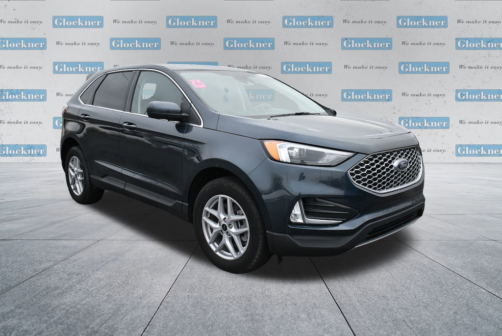 Glockner of Ironton is proud to offer this beautiful-looking 2024 Ford Edge in Stone Blue Metallic. This 2024 Ford Edge has passed our comprehensive inspection and comes with the following features; Convenience Package (Fog Lamps w/Iconic Silver Bezel, Perimeter Alarm, and Wireless Charging Pad), Equipment Group 201A, Glockner Certified Certified, AWD, 3.80 Axle Ratio, 4-Wheel Disc Brakes, 6 Speakers, ABS brakes, ActiveX Trimmed Heated Bucket Seats, Air Conditioning, Alloy wheels, AM/FM radio: SiriusXM with 360L, AM/FM Stereo, Auto High-beam Headlights, Auto-dimming Rear-View mirror, Automatic temperature control, Brake assist, Bumpers: body-color, Compass, Delay-off headlights, Driver door bin, Driver vanity mirror, Dual front impact airbags, Dual front side impact airbags, Electronic Stability Control, Emergency communication system: SYNC 4 911 Assist, FordPass Connect, Four wheel independent suspension, Front anti-roll bar, Front Bucket Seats, Front Center Armrest w/Storage, Front dual zone A/C, Front reading lights, Fully automatic headlights, Heated door mirrors, Heated front seats, Heated Steering Wheel, Illuminated entry, Knee airbag, Leather steering wheel, Leather-Wrapped Steering Wheel, Low tire pressure warning, Occupant sensing airbag, Outside temperature display, Overhead airbag, Overhead console, Panic alarm, Passenger door bin, Passenger vanity mirror, Power door mirrors, Power driver seat, Power passenger seat, Power steering, Power windows, Rear anti-roll bar, Rear Parking Sensors, Rear reading lights, Rear seat center armrest, Rear window defroster, Rear window wiper, Remote keyless entry, SiriusXM w/360L, Speed control, Speed-Sensitive Wipers, Split folding rear seat, Spoiler, Steering wheel mounted audio controls, SYNC 4A w/Enhanced Voice Recognition, Tachometer, Telescoping steering wheel, Tilt steering wheel, Traction control, Trip computer, Variably intermittent wipers, and Wheels: 18 Sparkle Silver-Painted Aluminum.